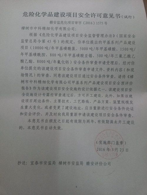 樟樹市中科精細(xì)化學(xué)有限公司